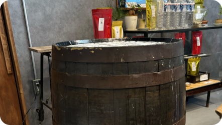 また、お酒風味を閉じ込めたインフューズドコーヒーやバレルエイジドコーヒーも展開しており、オリジナルドリップパックも作成しています。兼業で運営しているため営業時間は短いですが、より良いコーヒータイムを提供できるよう努めています。